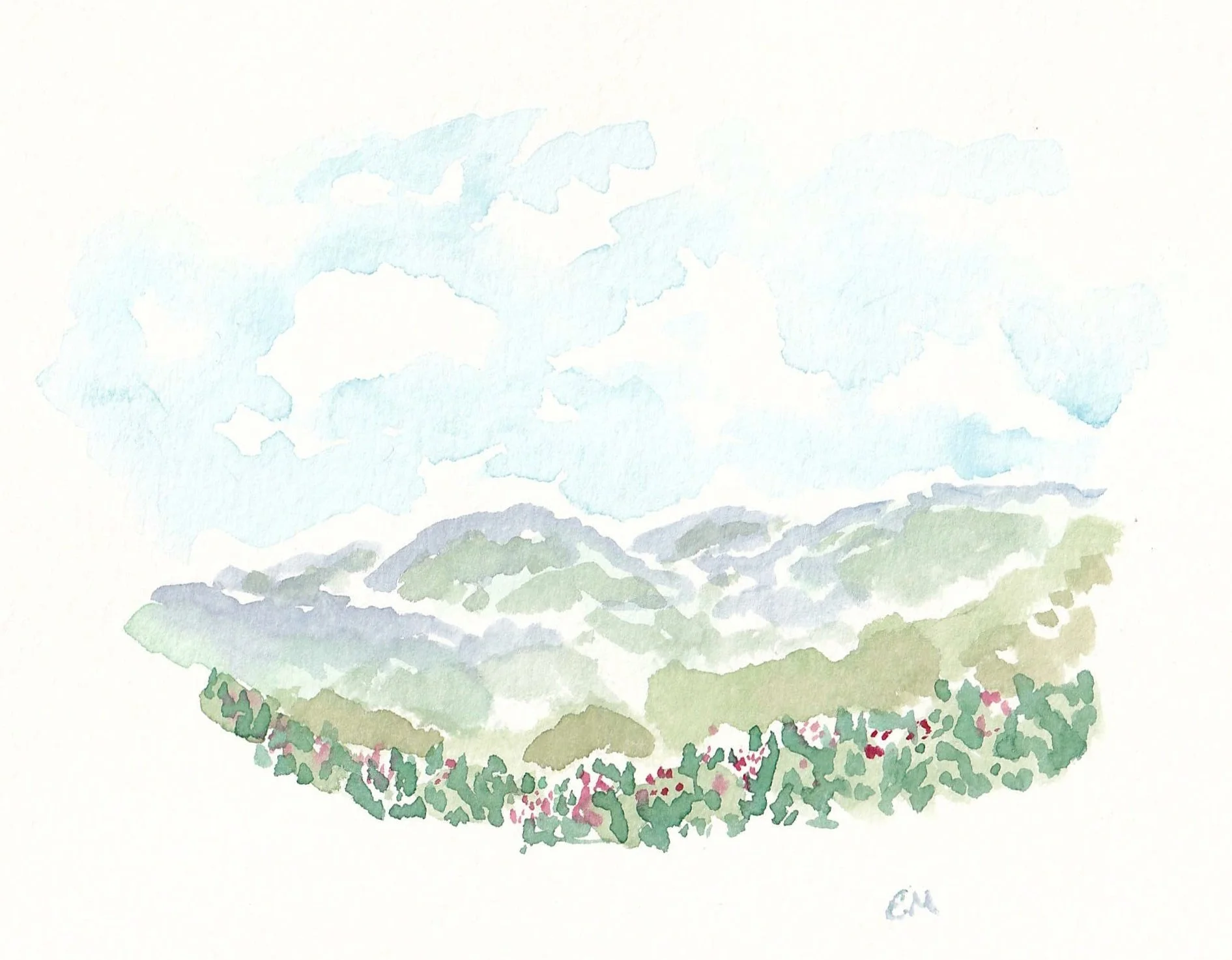 Iām drawn to landscapes, particularly rolling hills and slightly cloudy skies. My husband and I both grew up in the hills of Western Massachusetts, and the undulating geography makes me think of the ancient glaciers, carving out mountains while life was still figuring out what to do with more than one cell.